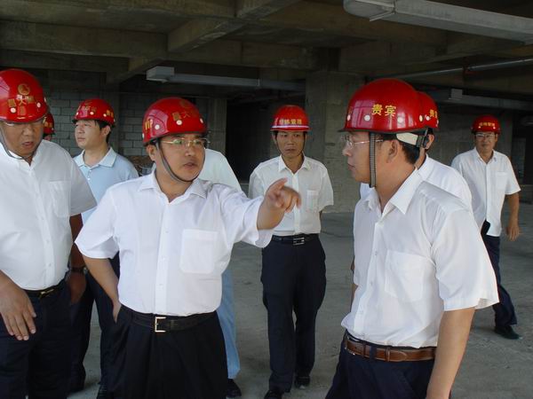 2008年8月2日下午,市委書記張新起視察建設中的陽光大廈工程。集團公司董事長徐鵬強陪同視察。