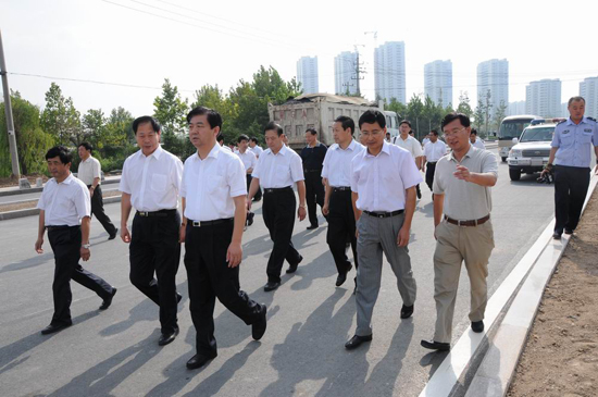 9月4日上午,濰坊市委副書記、市長許立全在副市長劉偉和建設局局長李廣東等陪同下視察了玄武街改造工程。集團公司董事長徐鵬強陪同許市長一行在現(xiàn)場實地視察并介紹工程有關(guān)情況。 視察中,許市長認真聽取工程介紹,仔細察看瀝青罩面、花壇緣石鑲貼、路面雨污水口與路面交接等細部工程處理情況,對工程的精細化管理給予充分肯定和較高評價;在白浪河橋工程現(xiàn)場,許市長實地察看了第六分公司正在進行的降水施工法,對工程進展情況表示了滿意??吹骄植康囟我虿疬w影響人行道工程進展時,許市長要求相關(guān)部門加快工作進度,積極為施工單位創(chuàng)造條件,早日修好這條縱貫東西、五區(qū)連橫、商業(yè)娛樂集聚的交通要道,造福濰坊人民。