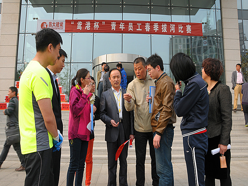 2014年4月11日下午,由集團公司團委倡導、鳶港裝飾工程有限公司發起并承辦的“鳶港杯”青年員工春季拔河比賽在辦公大樓前廣場舉行。第一分公司、第二分公司、第三分公司、第四分公司、第五分公司、第六分公司、第七分公司、第八分公司、安裝分公司、機施分公司、裝飾分公司、裝飾窗業分公司、物業分公司、園林公司、泰和公司、鳶港公司、市政公司以及集團總部共18支代表隊參加比賽。集團高管層領導滕忠斌、李坤明出席比賽活動。