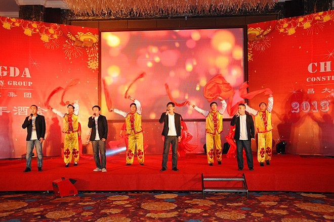 飛雪盛扮鳶都,一派銀裝素裹;瑞氣盈門昌大,處處歌悅舞動(dòng)。2012年12月30日,雖是嚴(yán)寒的“二九一”,卻難掩昌大人如火的激情。此時(shí)的昌大,如一艘滿載著龍年盛運(yùn)的航母,徐徐停靠港灣……這一年,昌大人全面發(fā)力穩(wěn)增長,調(diào)整結(jié)構(gòu)促轉(zhuǎn)型,在實(shí)踐自己城市綜合運(yùn)營商目標(biāo)的征程上大踏步前進(jìn),經(jīng)濟(jì)技術(shù)、理念文化、品牌建設(shè)、思想道德實(shí)現(xiàn)歷史新突破,社會(huì)貢獻(xiàn)率實(shí)現(xiàn)新增長,特別是會(huì)展中心工程順利交付使用,卡納圣菲高端地產(chǎn)項(xiàng)目圓滿開放,高新花園住宅小區(qū)國優(yōu)工程成功創(chuàng)建,北海路南擴(kuò)工程高標(biāo)準(zhǔn)建成,在整個(gè)行業(yè)持續(xù)低迷的情況下,集團(tuán)的綜合實(shí)力再次得到彰顯。一個(gè)“近者悅,遠(yuǎn)者來”、有尊嚴(yán)的幸福昌大正在得到全面的建設(shè);而在這一天,昌大人以自己的方式舉辦了2013年的新年酒會(huì),歌舞慶龍年,金蛇迎祥瑞。 總經(jīng)理朱九洲在新年致辭中,重點(diǎn)回顧了集團(tuán)一年來的發(fā)展歷程。集團(tuán)的各項(xiàng)事業(yè)取得了新的成績。 在這瑞雪映照、喜氣祥和的新年酒會(huì)上,集團(tuán)員工自編自演自導(dǎo)了13個(gè)文藝節(jié)目,有第四、第八、安裝分公司自創(chuàng)的舞蹈《鮮花的祝福》;第一、第四、第五、安裝分公司自編的舞蹈《江南STYLE》;機(jī)施分公司自編的小品《超幸福售樓處》,市政公司自創(chuàng)的小品《工地探親》,第七分公司自編舞臺(tái)劇《旅途》,第一分公司自創(chuàng)的啞劇《蓋章》;第二、第八分公司合演的相聲《你是我兄弟》;第六分公司和機(jī)施分公司自編的MV歌曲《父親》;集團(tuán)總部和第六分公司合作的歌伴舞《大中國》,第二、第五、第八分公司和泰和公司聯(lián)袂的歌伴舞《舉杯吧,朋友》,市政公司自編歌伴舞《快樂崇拜》;裝飾分公司演出的京劇《轅門射戟》新段;第三分公司自創(chuàng)健美操《淑女愛運(yùn)動(dòng)》,這些節(jié)目,或氣勢如宏、或舞美歌悅、或滑稽幽默、或時(shí)尚奔放、或優(yōu)雅沉香、或豪放激情,以此盡展昌大人2012年愉悅的心情。與往年相比,今年的文藝演出,規(guī)模更大,節(jié)目類型更多,節(jié)目包裝效果更好,更貼近企業(yè)實(shí)際。還有一個(gè)最突出的亮點(diǎn)是今年的節(jié)目編排更大范圍地突破了單位界限,實(shí)現(xiàn)了單位間的大聯(lián)合大串燒。在年底各項(xiàng)業(yè)務(wù)更為繁重的時(shí)候,全體演服人員自覺克服工演矛盾,以極大的熱情投入新年酒會(huì)的準(zhǔn)備工作,許多單位的演員白天忙碌一天,主要靠晚上或加班進(jìn)行排練,有些演職員因?yàn)樘珓诶鄄〉沽耍€堅(jiān)持排練和工作,表現(xiàn)出了強(qiáng)烈的責(zé)任心和極高的集體榮譽(yù)感。集團(tuán)總部相關(guān)部門全力保障文藝演出和酒會(huì)的各項(xiàng)籌備工作,確保了新年酒會(huì)的順利實(shí)施。