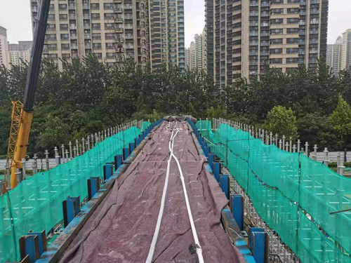 2021年6月13日,在克服了連續高溫天氣、高考停工等諸多困難的情況下,由集團四建公司、八建公司為主施工的寶通街高架快速路工程,已完成56軸、57軸、97軸蓋梁的混凝土澆筑工作,此舉標志著集團在寶通街項目的施工進入新的階段。據悉,集團在一、二標段率先進入蓋梁混凝土澆筑。集團作為地方領軍企業的優勢得以充分彰顯。