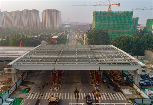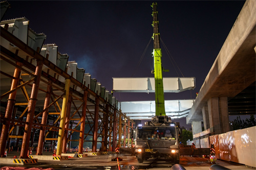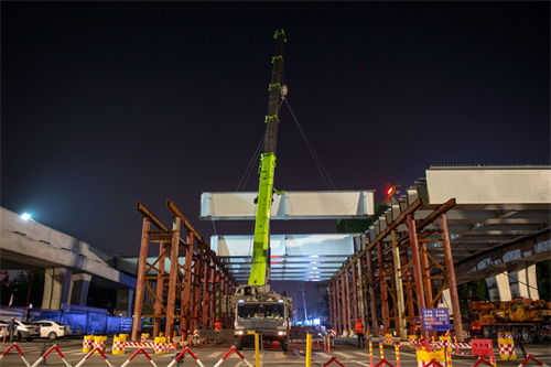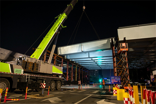 奮戰(zhàn)兩個晚上完成路口鋼箱梁吊裝為市民提供最大便捷——集團寶通街快速路東方路、金馬路路口鋼箱梁吊裝完成