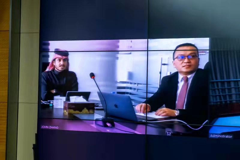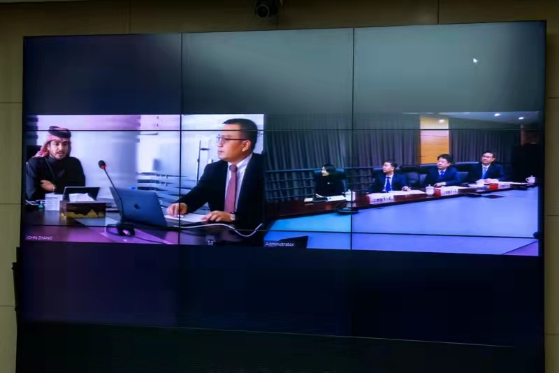 董事長徐鵬強、總裁朱九洲等集團領導與卡塔爾扎伯王爺舉行視頻會議