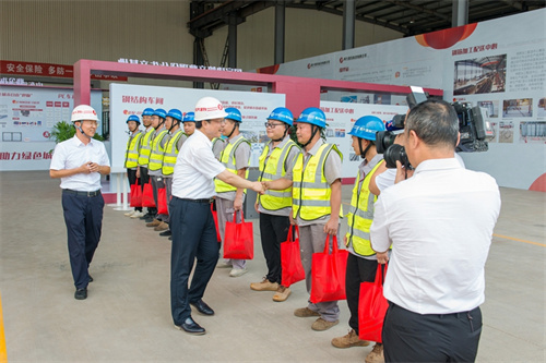 劉運(yùn)參觀了昌大建科產(chǎn)業(yè)園裝配式建筑生產(chǎn)線,慰問一線員工。隨后,在昌大建科二樓會議室組織了座談交流。徐鵬強(qiáng)董事長匯報(bào)了昌大集團(tuán)有關(guān)情況,感謝劉運(yùn)書記親自選定昌大作為包靠企業(yè),表示昌大集團(tuán)在市委、市政府的正確領(lǐng)導(dǎo)下,各項(xiàng)工作都處在一個(gè)高位發(fā)展水平上,目前雖然遇到了很多困難,但昌大有信心在市委和市政府的領(lǐng)導(dǎo)下渡過難關(guān)并引領(lǐng)全市建筑企業(yè)實(shí)現(xiàn)高質(zhì)量發(fā)展。昌大建科總經(jīng)理李飛匯報(bào)了昌大建科關(guān)于裝配式建筑相關(guān)情況。
