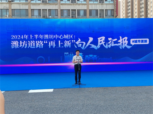 2024年6月30日上午,濰坊市舉行2024年上半年中心城區城市道路集中通車儀式,主會場設在集團四建公司承建的月河路(健康街-勝利街)工地現場,寒亭區分會場設在四建公司承建的吉祥街、八建公司承建的云祥街與渤海路路口。集團公司總裁朱九洲出席主會場活動。出席主會場活動的領導和嘉賓有:濰坊市政府副秘書長張勇,濰坊市住建局黨組書記、局長馬冰,濰城區委副書記、區長程錦,市住建局黨組成員、副局長盧波,市委宣傳部、市財政局、市自然資源和規劃局、市住建局、市城管局、市公安局交警支隊分管負責同志,各道路建設指揮部有關負責同志,項目建設單位、施工單位、設計單位、監理單位等參建單位代表、人大代表、政協委員、群眾代表等共約70人。