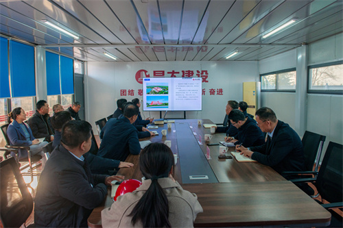 在隨后召開的座談會上,二建公司項目部匯報了項目前期工作和下一步的工作安排。鄭德前書記代表學院對項目的主體封頂表示熱烈祝賀,他表示,工程進行的非常順利,得益于施工單位、監(jiān)理單位與學校相關部門間的齊心協(xié)力、共同奮斗,對大家的辛勤付出表示衷心的感謝,對施工單位前期的工作表示充分的肯定。他同時強調,該項目建設對于學院升本工作的重要性,并對項目下一步的工作提出了要求,要求各參建單位要繼續(xù)保持這種一如既往的精氣神,繼續(xù)發(fā)揚前期“能打硬仗、善打硬仗”的拼搏精神,保質、保量、保安全,確保項目按期竣工交付。集團公司總裁朱九洲現(xiàn)場部署項目沖刺階段任務,突出強調了三個重點:一是強化總包統(tǒng)籌,要求二建公司在后續(xù)工作中發(fā)揮“主心骨”作用,高效協(xié)調裝飾幕墻公司、安裝公司等專業(yè)單位交叉作業(yè),確保工序無縫銜接;二是要抓實精細化管理,做好現(xiàn)場各種材料的管理,杜絕安全隱患,實現(xiàn)文明施工常態(tài)化;三是要在后續(xù)的施工中繼續(xù)高標準、嚴要求,全力以赴做好施工管理,確保工程按期高質量完成,為學校高質量發(fā)展賦能。