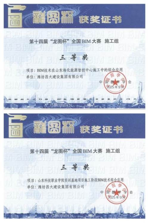 二則是,由中國(guó)圖學(xué)學(xué)會(huì)舉辦的第十四屆“龍圖杯”全國(guó)BIM大賽公布了獲獎(jiǎng)結(jié)果。集團(tuán)公司申報(bào)的《BIM技術(shù)在山東海化能源智控中心施工中的綜合應(yīng)用》、《山東科技職業(yè)學(xué)院實(shí)訓(xùn)基地項(xiàng)目施工階段BIM技術(shù)綜合應(yīng)用》均獲三等獎(jiǎng)。實(shí)現(xiàn)歷史新突破。