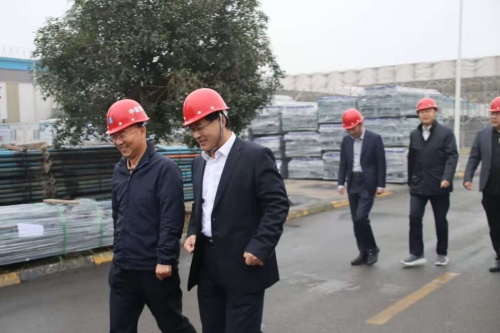 期間,董事長徐鵬強參觀了中建鋁產業園區、鋁模板生產車間、企業文化展廳,深入了解中建鋁主要產品、生產工藝、區域布局、工程業績等。